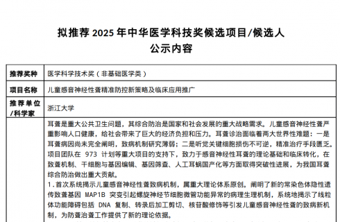 浙江諾爾康神經電子科技股份有限公司作為主要完成單位,浙江省神經電子與腦機接口技術重點實驗室副院長銀力教授參與完成的《聽力障礙的精準診斷和全生命周期聽力康復體系的構建和推廣》從數百個申報項目中脫穎而出,榮獲“2023年度中國康復醫學會科學技術一等獎”。
